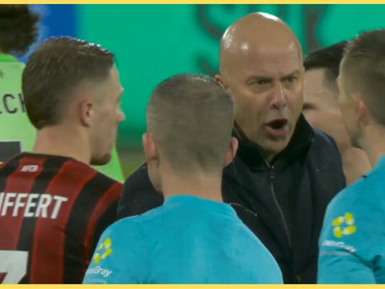 Fuming Arne Slot makes a beeline for the officials at full-time as Liverpool blow it